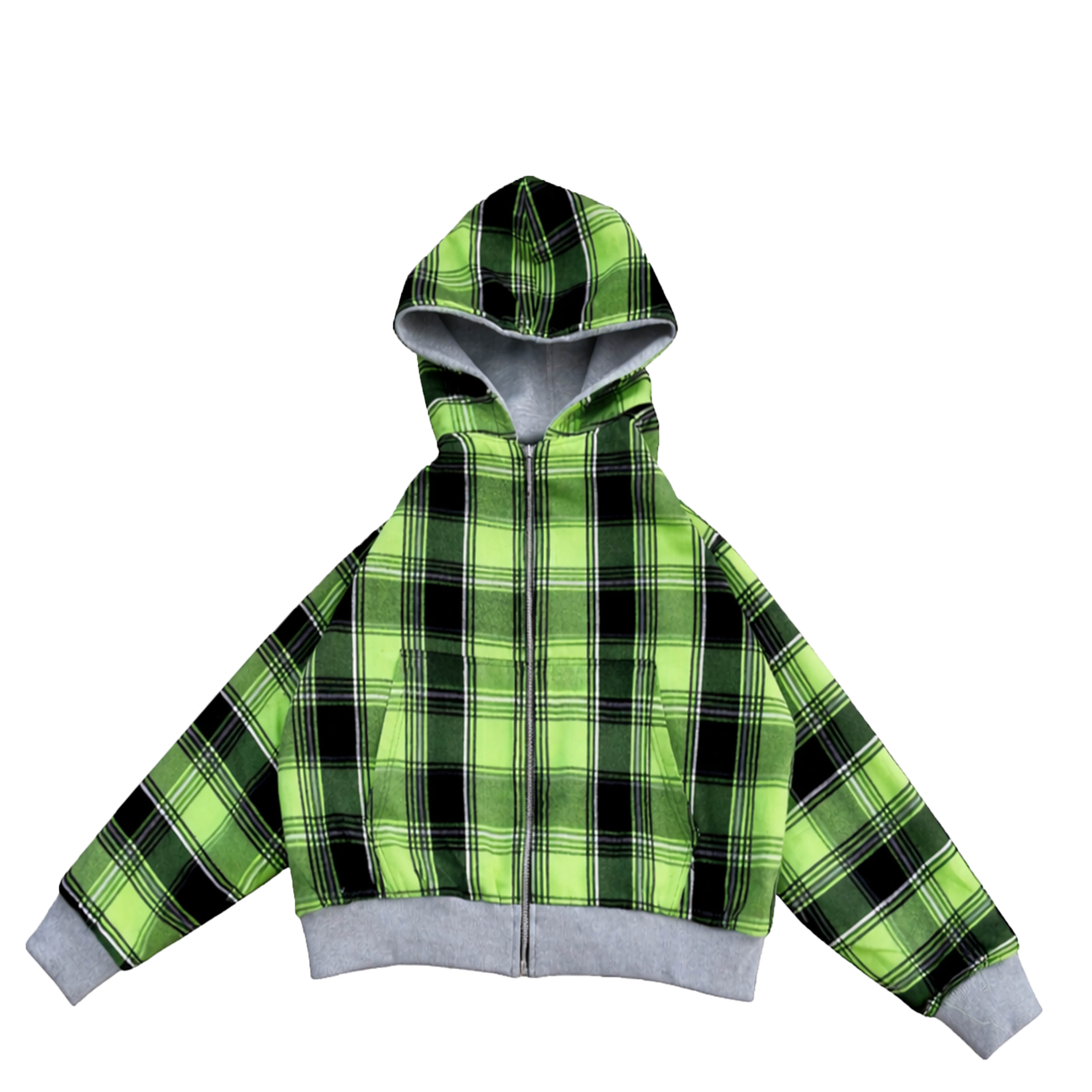 Flannel Reversible Hoodie - Green/Gray